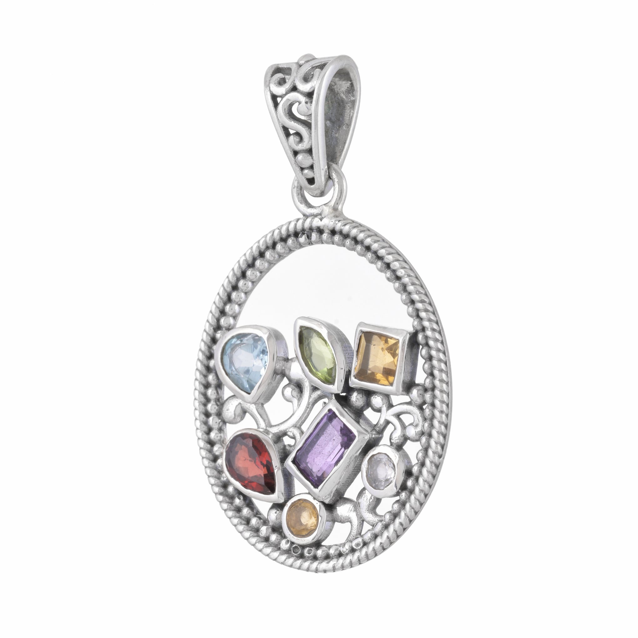 925 Sterling Silver Multi Gemstone Pendant SSP252