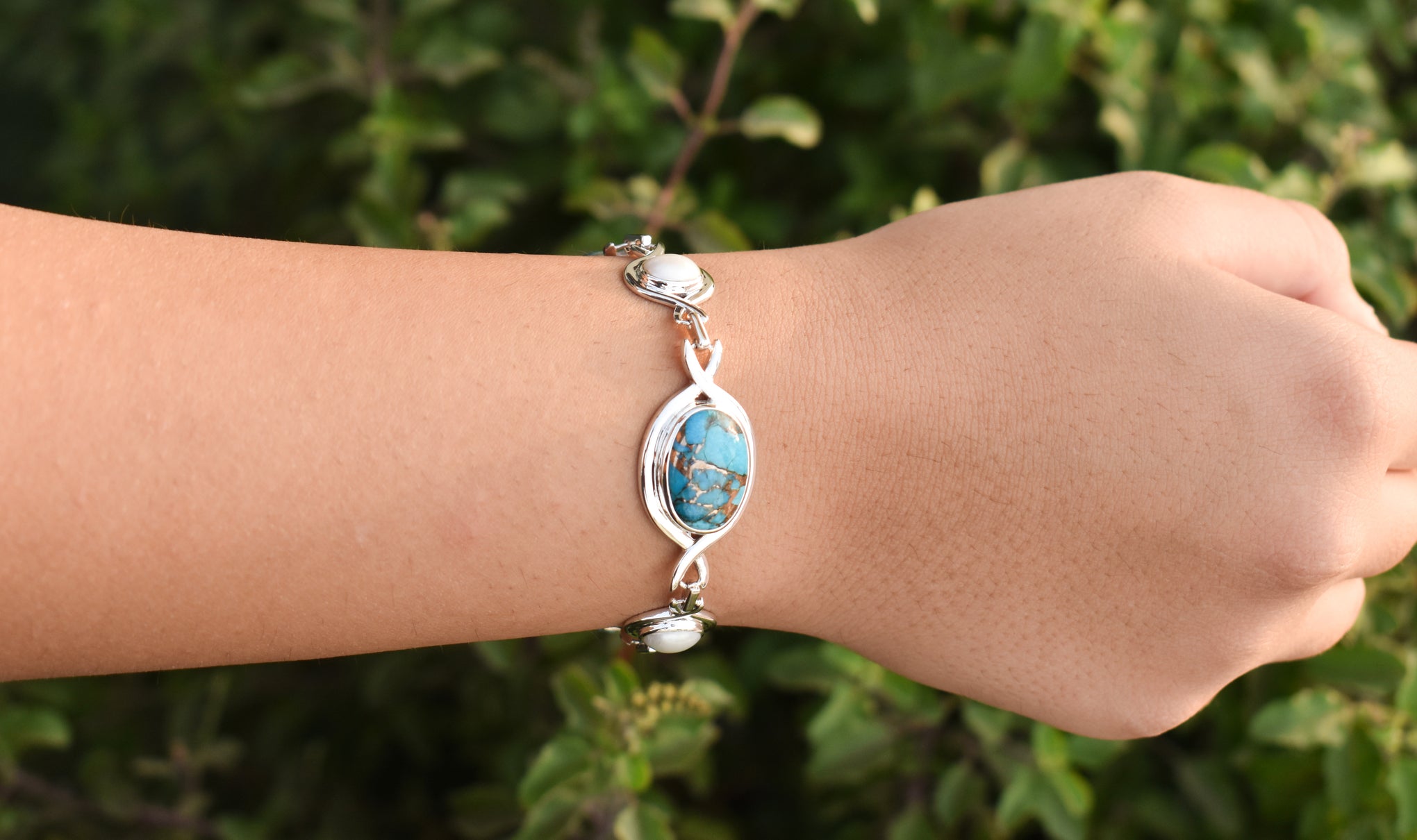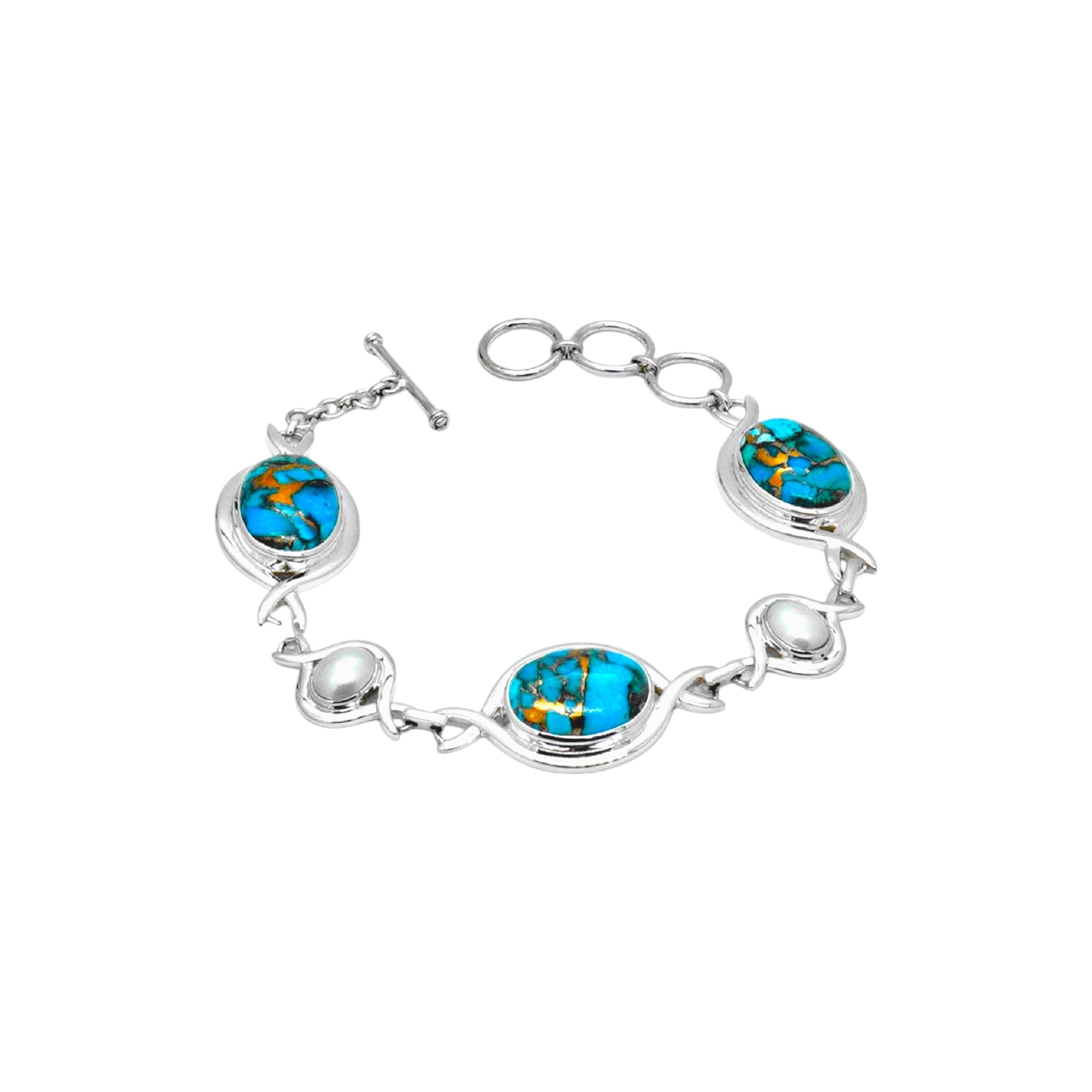 Sterling Silver Copper Turquoise & Pearl Bracelet SSBR8