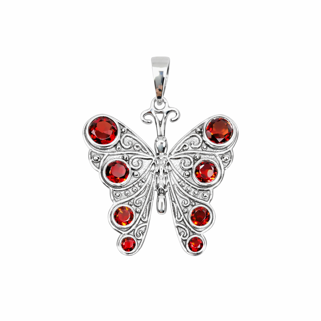 Sterling Silver Garnet Butterfly Pendant SSP58
