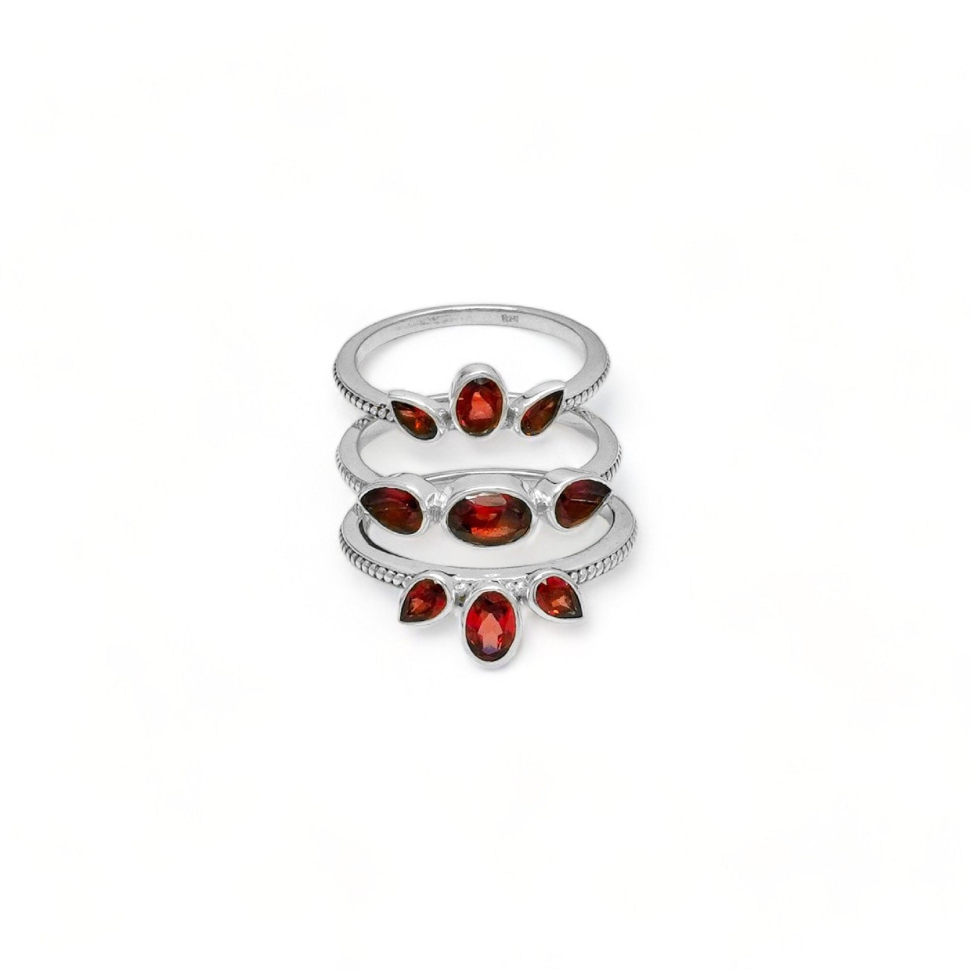 Sterling Silver Garnet Ring Set SSR7