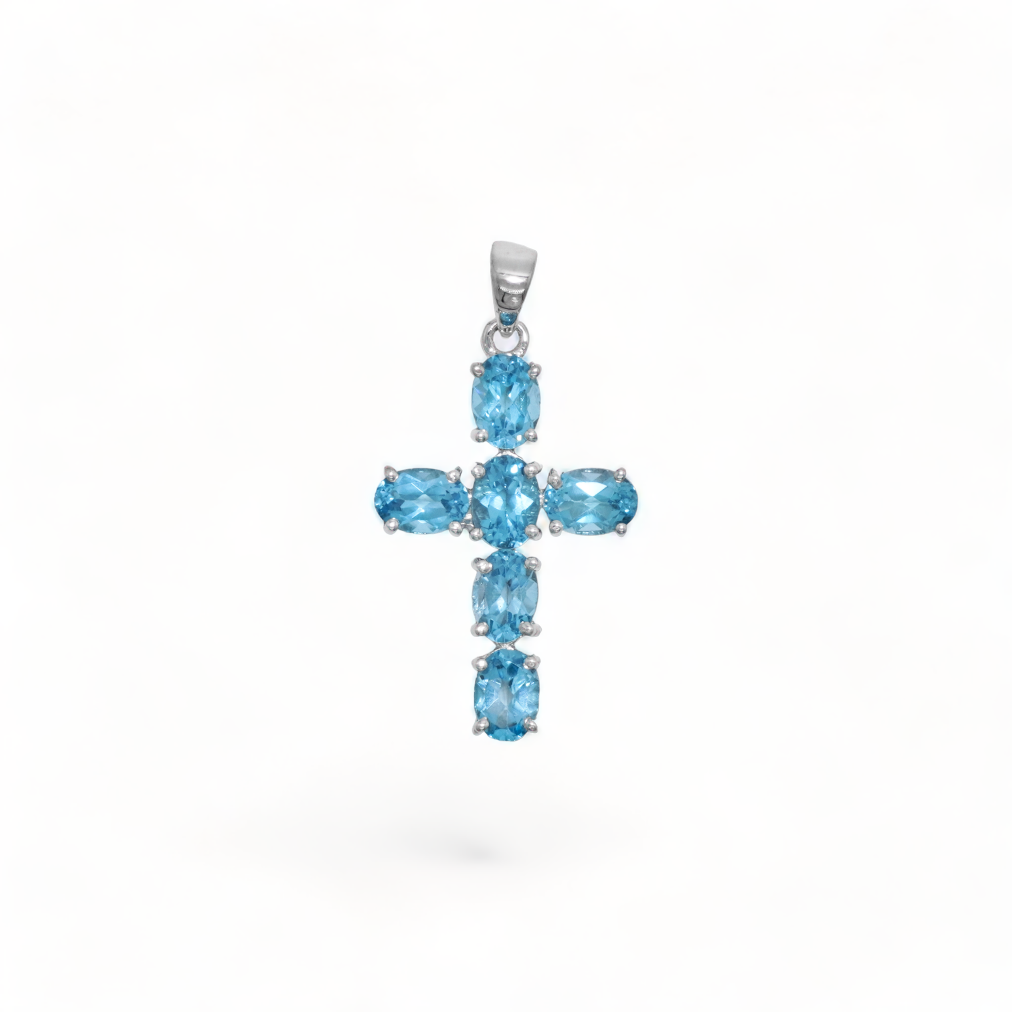 Sterling Silver Blue Topaz Cross Pendant SSP203