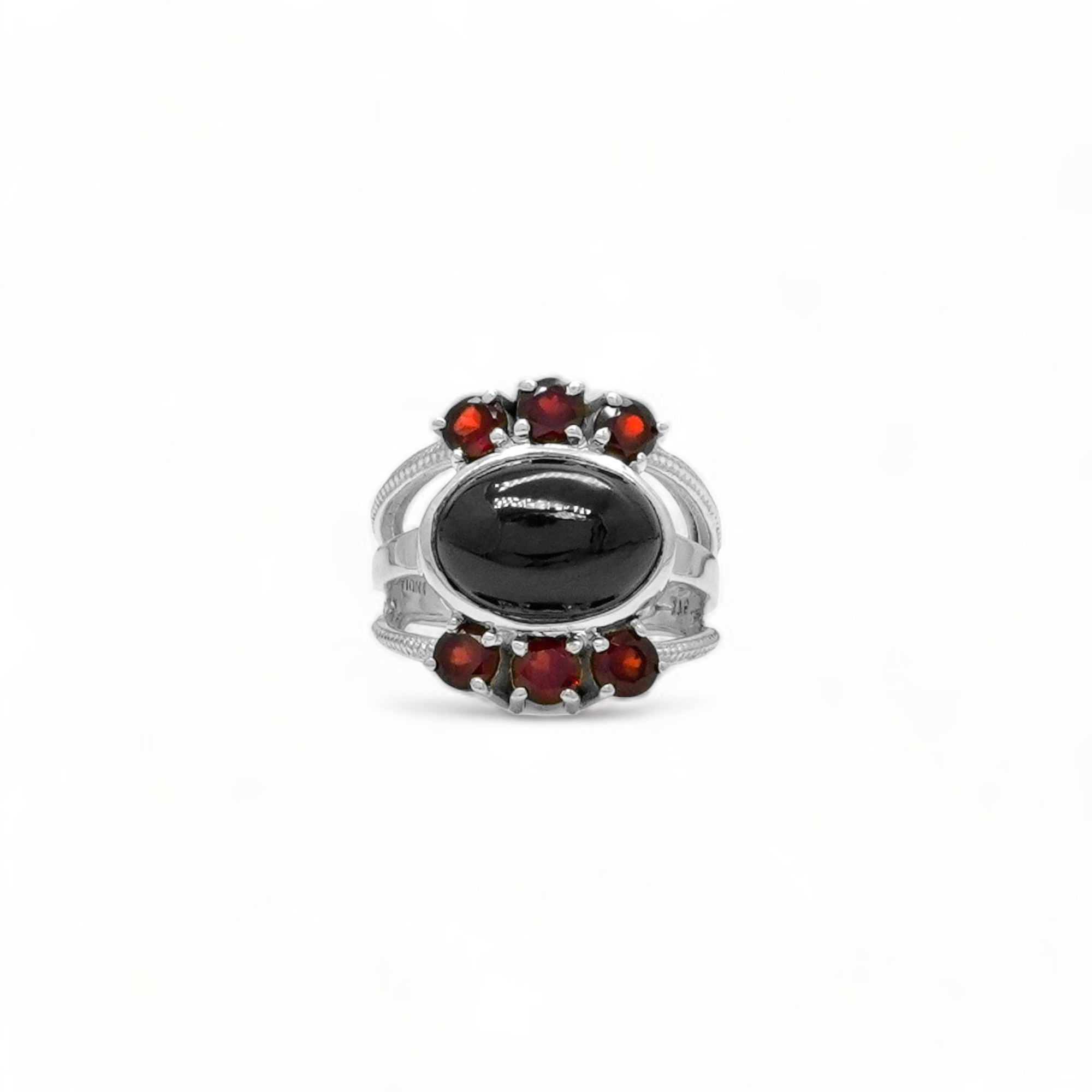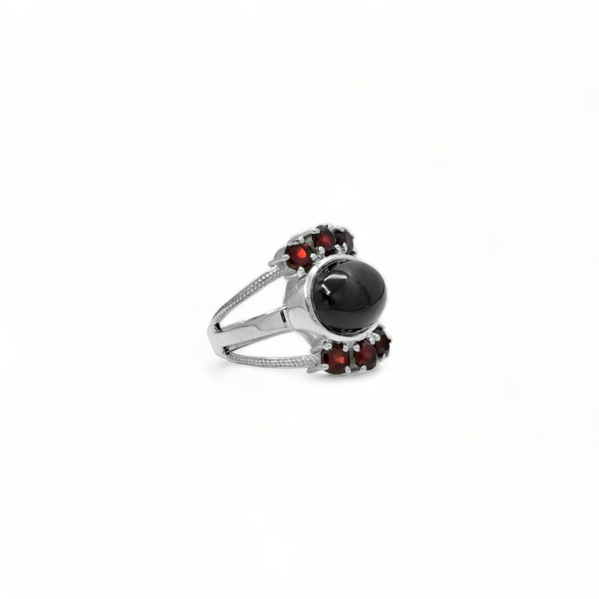Sterling Silver Black Spinel & Garnet Ring SSR268